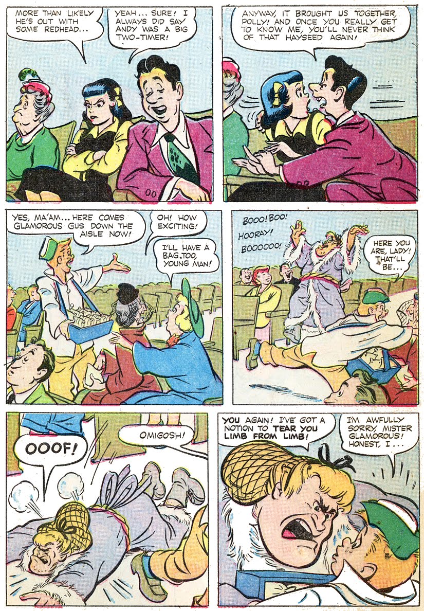 Today we have the masterful work of Mr. Al Hubbard in two Andy Hardy stories from Four Color No. 389, April 1952. What I love most about the following pages is Hubbard's astonishing feel for character. With Hubbard, every character is given a unique life - they move and act differently from one another, have different weight and balance. And what facial expressions! Hubbard did all the artwork for the following, pencils and inks. After the stories, I'll wrap the post up with two black & white inside covers (Lordy Lou, what inking!), and a stunner of a back cover - all at no extra charge!